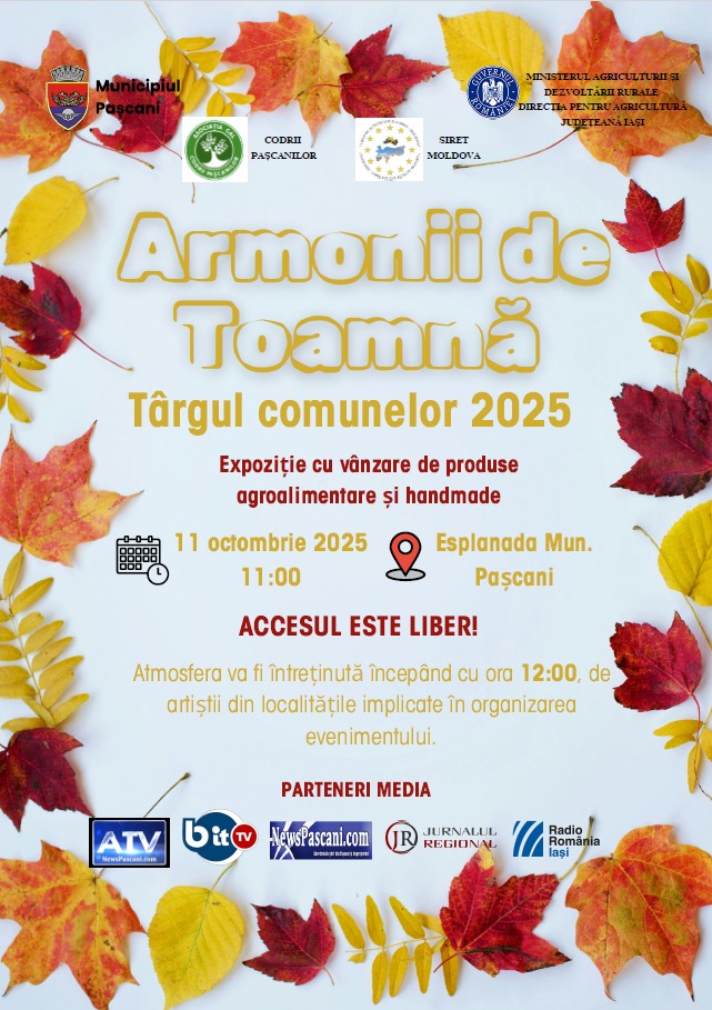 Festivalul ,,ARMONII DE TOAMNĂ” de admin | oct. 10, 2025 | Activități de organizare, Noutăți | 0 comentarii Haideți să celebrăm împreună frumusețea toamnei și valorile comunității noastre!